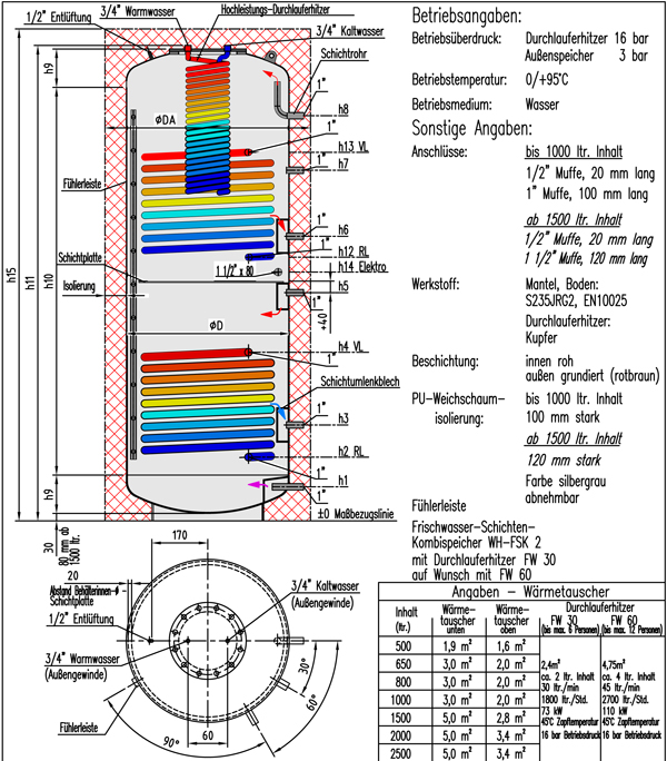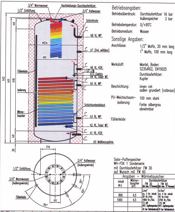 Mit riesigen 4,5 m2 Wärmetauscher. Der Hygienespeicher FSK1 mit einem optimal dimensionierten Solarwärmetauscher für alle Anwendungen zur bestmöglichen Energieausbeute in Kombination mit verschiedensten Energiequellen, wie Öl, Gas, Holz, BHKW und Solar - und das alles bei gleichzeitiger Warmwasserbereitung.